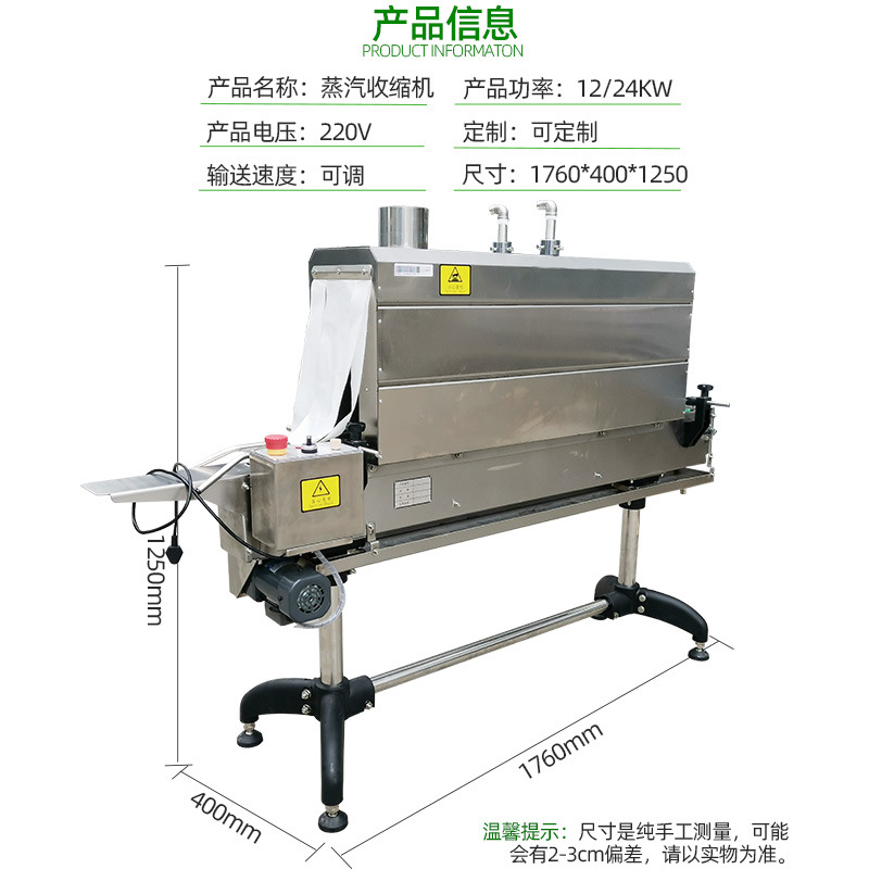 - 收縮效果好:蒸汽收縮機利用蒸汽的熱量使包裝薄膜收縮,能夠使薄膜緊密地貼合在產品表面,達到很好的包裝效果。這種收縮方式可以有效防止產品在運輸和儲存過程中受到碰撞、摩擦和灰塵的污染,同時也能提升產品的外觀吸引力。