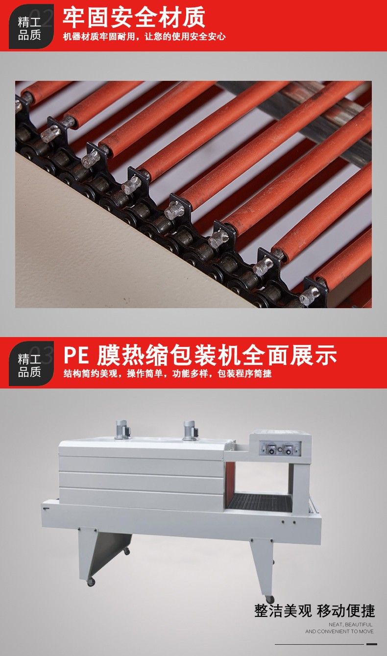 • 適用于中型規(guī)模的包裝生產(chǎn)線。其優(yōu)勢在于加熱均勻、穩(wěn)定,使用壽命長。在一些中型的食品、日用品生產(chǎn)企業(yè)中,不銹鋼加熱系統(tǒng)的 PE 熱收縮機能夠提供高質(zhì)量的包裝效果,滿足一定批量產(chǎn)品的包裝需求。