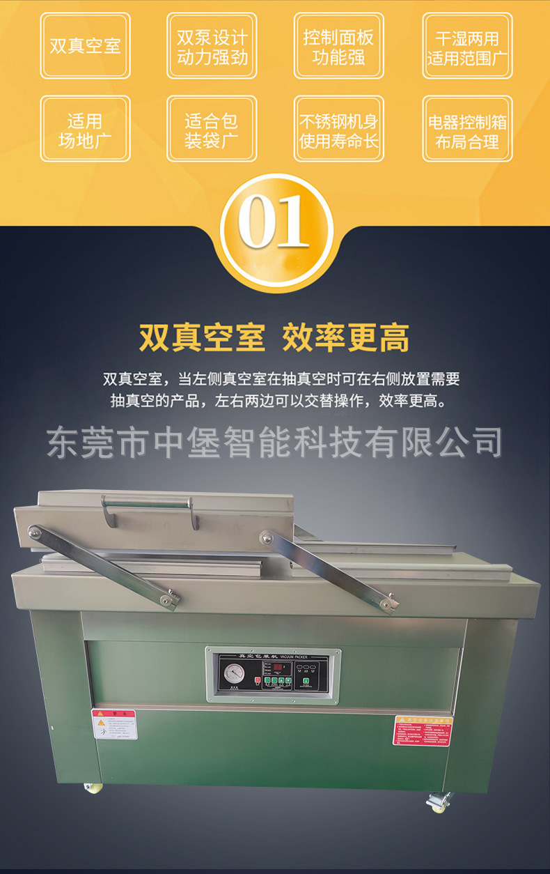 • 自動化程度:自動化程度高的雙室真空包裝機(jī),如配備自動上料、下料、分揀等功能,能減少人工操作時間,提高工作效率。