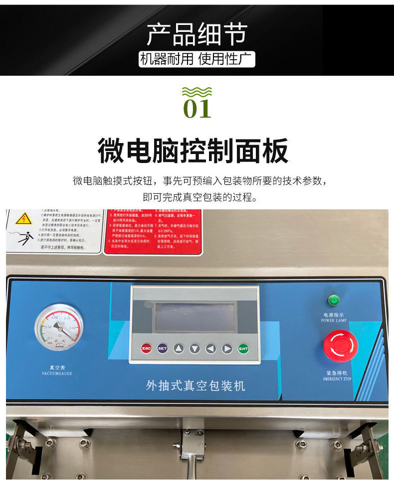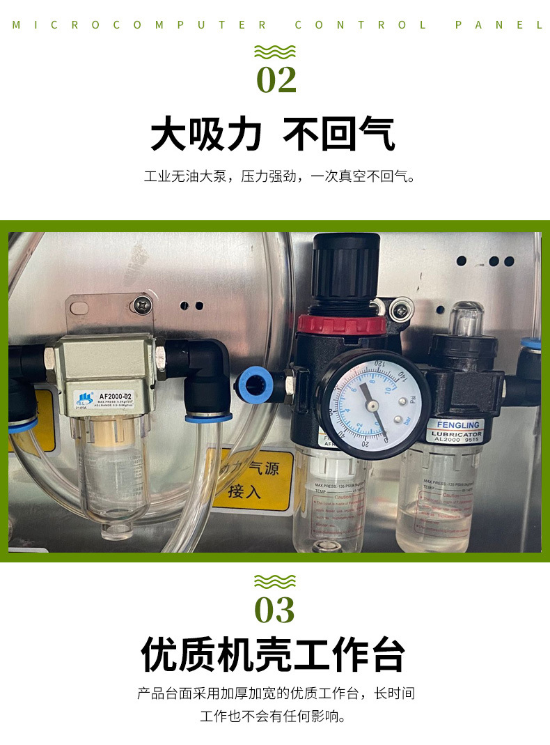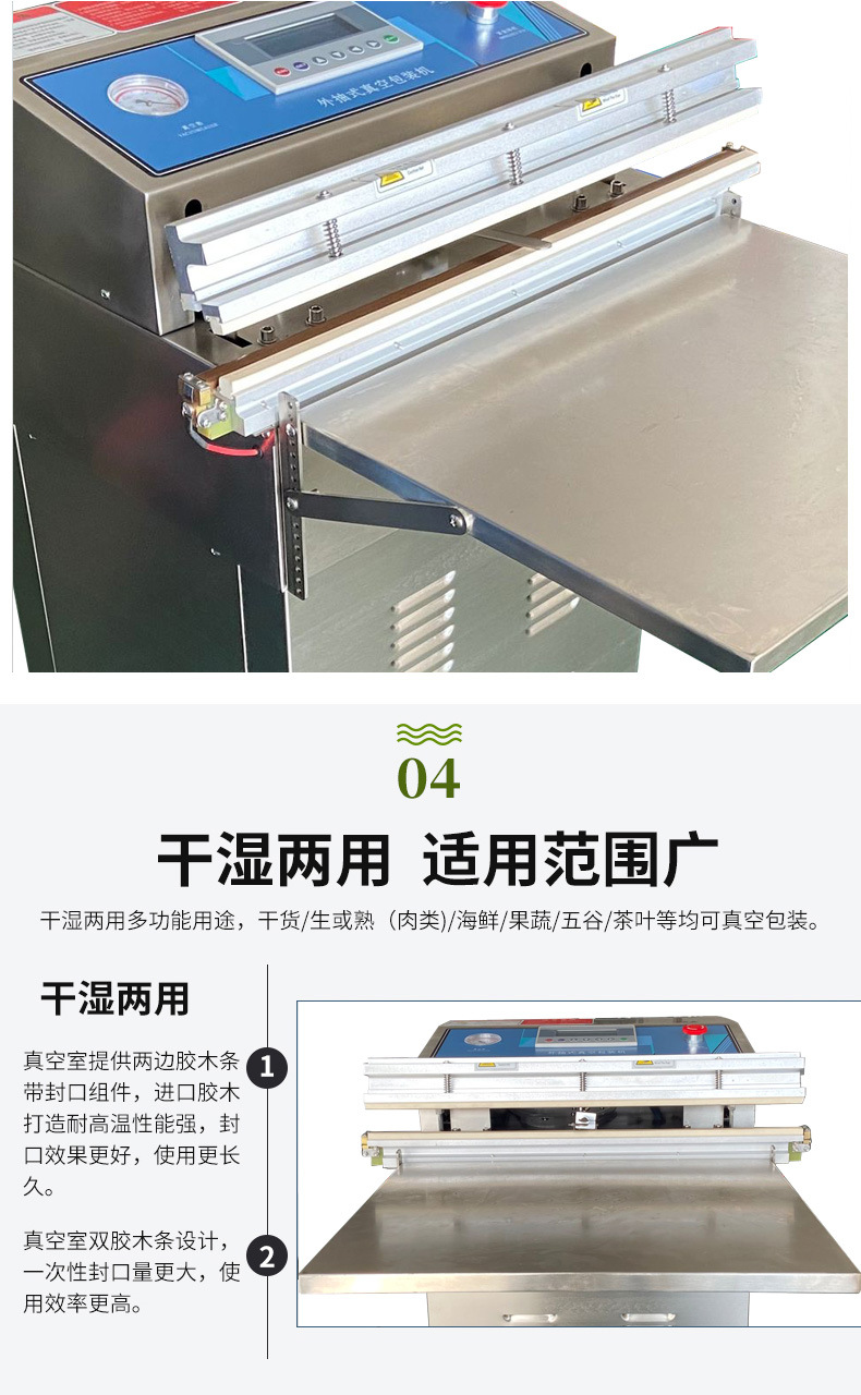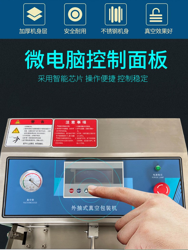 • 真空腔清潔:定期打開真空腔,清理腔體內(nèi)的雜物、灰塵和殘留的包裝材料。尤其要注意清理真空腔的角落和縫隙,可以使用小型的清潔工具,如毛刷等,確保無雜物殘留,以免影響真空密封效果。