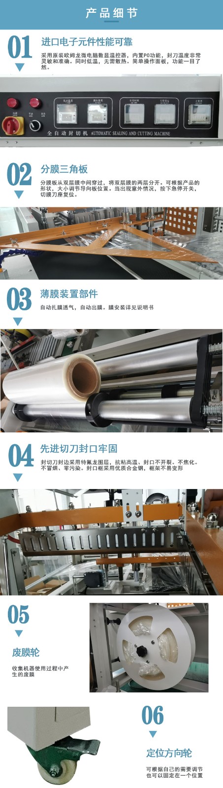 - 自動(dòng)化控制:通過(guò)光電傳感器或其他感應(yīng)裝置,精確檢測(cè)產(chǎn)品的位置和尺寸,自動(dòng)調(diào)整封切的位置和長(zhǎng)度,確保包裝的準(zhǔn)確性和美觀(guān)性。