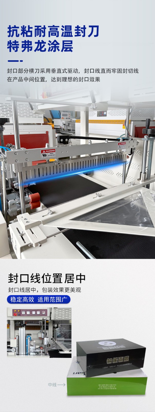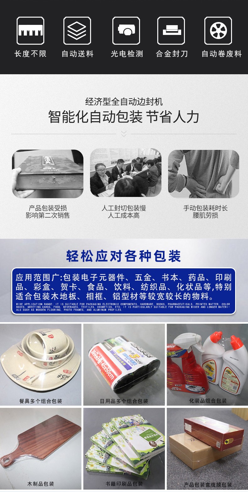 其適用范圍廣的核心邏輯是結(jié)構(gòu)兼容性強(qiáng)、薄膜適配性高、尺寸調(diào)節(jié)靈活,能應(yīng)對(duì)不同形態(tài)、尺寸、材質(zhì)的產(chǎn)品包裝需求: