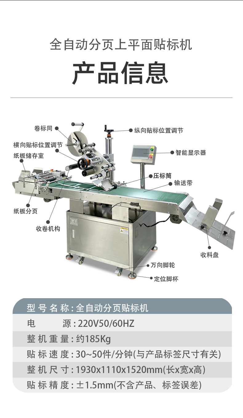 東莞市中堡智能科技實(shí)業(yè)有限公司的全自動分頁貼標(biāo)機(jī):可應(yīng)用于紙片、名片、標(biāo)簽、各種材質(zhì)的卡片、電話卡、IC 卡、IP 卡、游戲沖值卡、塑料復(fù)合包裝袋、紙盒片、紙袋等各種厚度各種材質(zhì)的片狀物品的自動分頁,并進(jìn)行貼標(biāo)。以 ±1mm 超高精度和 0-100 個 / 分鐘的極速性能,支持多種標(biāo)簽類型,廣泛應(yīng)用于電子、五金、塑膠、化工等行業(yè)。