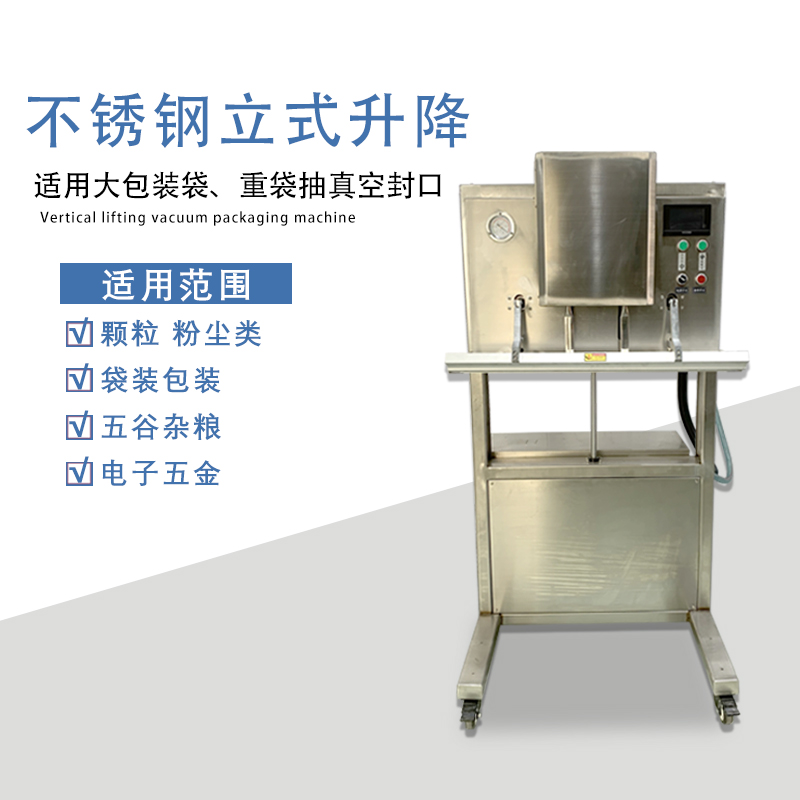 立式升降真空包裝機(jī)無真空室的約束適合大包裝袋、重袋抽真空封口。