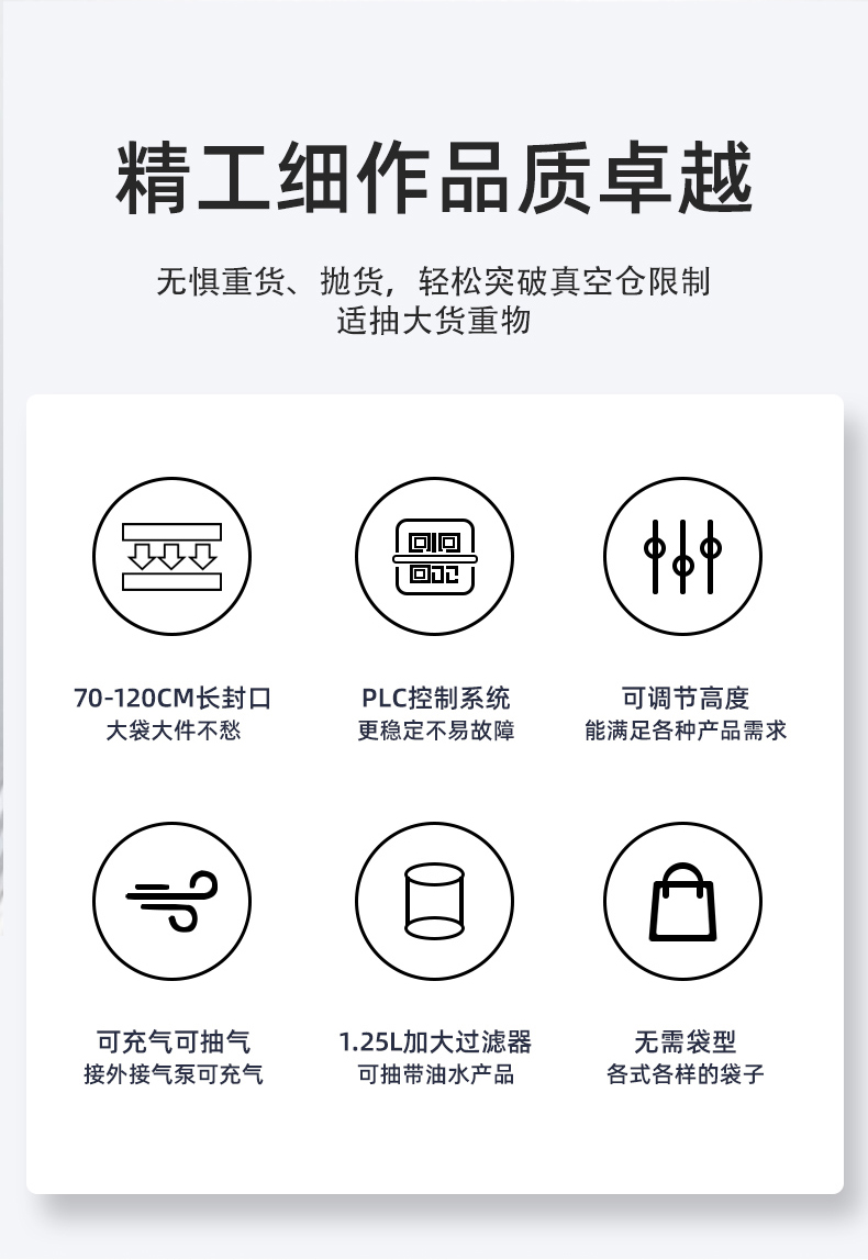 大尺寸、重重量、異形產(chǎn)品或多品類(lèi)小批量生產(chǎn)的真空包裝需求,以下是具體場(chǎng)景分類(lèi)。