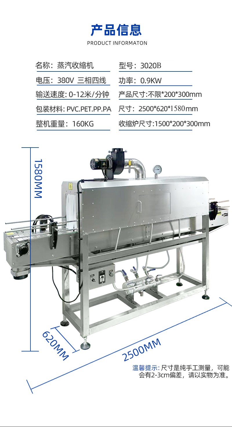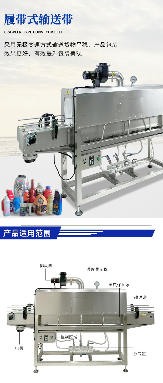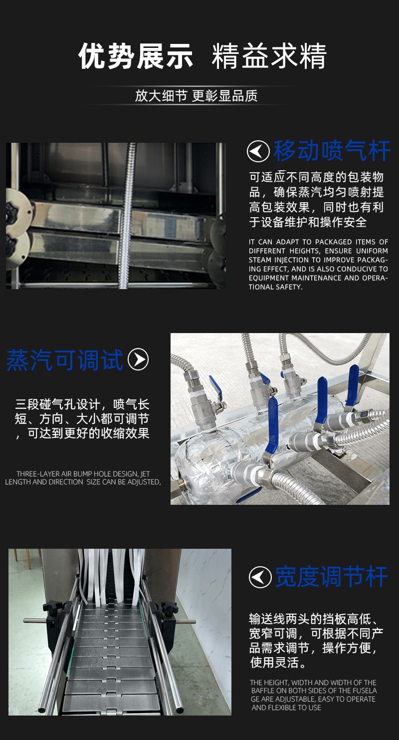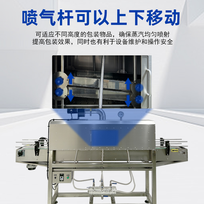 蒸汽收縮機(jī)的核心工作原理是利用蒸汽的均勻熱量,使熱收縮膜受熱后緊密包裹產(chǎn)品,最終完成密封定型的自動化包裝過程。