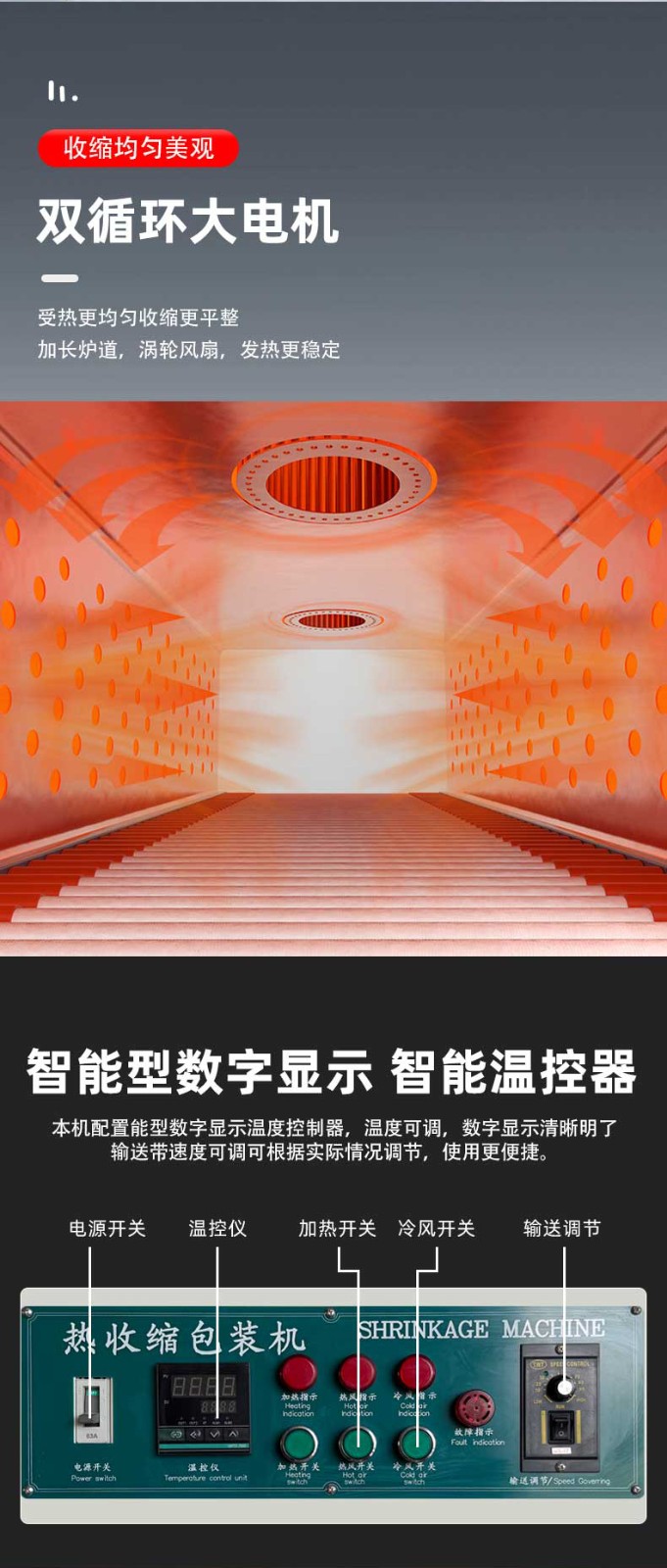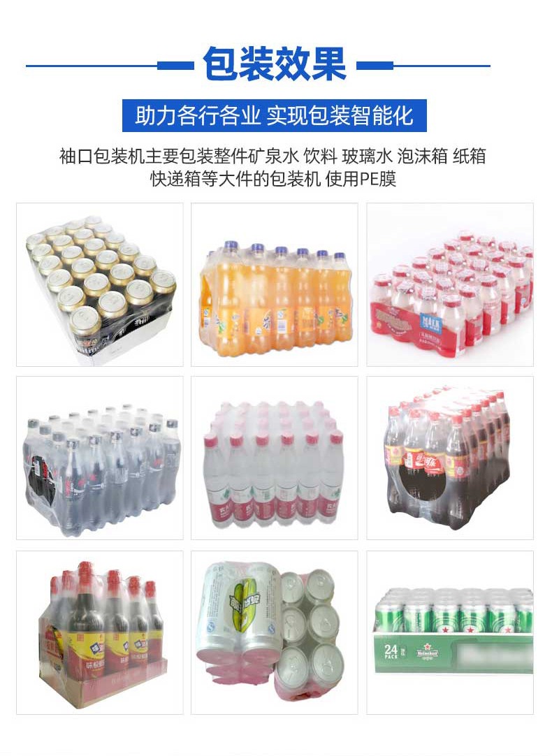 袖口式封切熱收縮包裝機(jī)憑借 高效密封、防塵防潮、貼合定型、便于堆疊運(yùn)輸 的核心優(yōu)勢(shì),廣泛應(yīng)用于多行業(yè)的標(biāo)準(zhǔn)化包裝需求,尤其適配批量生產(chǎn)的規(guī)則 / 異形產(chǎn)品組合包裝。 一、食品飲料行業(yè)(最核心應(yīng)用領(lǐng)域) 瓶裝 / 罐裝產(chǎn)品組合包裝 礦泉水、啤酒、飲料、涼茶等 多瓶捆綁包裝(如 6 瓶 / 12 瓶 / 24 瓶組),無底托收縮膜直接包裹,替代傳統(tǒng)紙箱 / 膠帶,降低包裝成本 30%+,且透明膜可展示產(chǎn)品品牌; 罐頭、醬料瓶、食用油桶等 單瓶 / 多瓶密封包裝,防止運(yùn)輸過程中泄漏、氧化,延長(zhǎng)保質(zhì)期(尤其適用于含油脂、易受潮食品)。 零食與烘焙產(chǎn)品包裝 餅干盒、薯片罐、面包禮盒等 多盒組合包裝(如 3 盒 / 6 盒套裝),收縮膜緊密貼合,避免禮盒散開,同時(shí)防塵防潮,提升禮盒檔次; 冷凍食品(如速凍水餃、湯圓)的 外箱收縮包裝,強(qiáng)化箱體密封性,防止冷鏈運(yùn)輸中受潮解凍。 符合食品級(jí)包裝標(biāo)準(zhǔn)(適配 PE/POF 無毒膜),包裝速度快(8-15 包 / 分),適配生產(chǎn)線連續(xù)作業(yè),同時(shí)透明包裝便于終端貨架展示。 高效量產(chǎn),適配規(guī)?;a(chǎn) 全自動(dòng)機(jī)型包裝速度達(dá) 8-25 包 / 分鐘(單排)、15-40 包 / 分鐘(多排),支持 24 小時(shí)連續(xù)作業(yè),匹配食品飲料、日化等行業(yè)生產(chǎn)線節(jié)拍; 換產(chǎn)靈活,參數(shù)化存儲(chǔ) 100 + 組產(chǎn)品規(guī)格,切換僅需 2-5 分鐘,無需拆卸機(jī)械部件。 包裝效果優(yōu)質(zhì),防護(hù)與展示兼具 熱收縮膜緊密貼合產(chǎn)品輪廓,形成密封、防潮、防塵、防刮的立體包裝,降低運(yùn)輸損耗率至 0.5% 以下; 支持透明膜 / 彩印膜包裝,透明膜可展示產(chǎn)品細(xì)節(jié),彩印膜可印刷品牌 LOGO 與促銷信息,兼顧防護(hù)與品牌營(yíng)銷。 成本可控,降本增效顯著 無底托包裝設(shè)計(jì)替代傳統(tǒng)紙箱、膠帶,包裝材料成本降低 30%-50%,同時(shí)節(jié)省倉儲(chǔ)與運(yùn)輸空間 40%; 采用紅外加熱或石英管加熱技術(shù),比傳統(tǒng)電熱絲節(jié)能 30%-50%,待機(jī)自動(dòng)降功率,長(zhǎng)期運(yùn)行成本更低; 全自動(dòng)機(jī)型僅需 1 人巡檢,降低人工成本 80%,避免人工操作誤差。 兼容性強(qiáng),適配多場(chǎng)景需求 可包裝方形、圓形、異形等多種形態(tài)產(chǎn)品,支持單件 / 多件組合包裝,產(chǎn)品尺寸覆蓋 50mm×30mm×20mm 至 800mm×600mm×500mm(可定制更大規(guī)格); 適配 PE、POF、PVC 等多種熱收縮膜,滿足食品級(jí)(FDA/ROHS)、醫(yī)藥級(jí)(GMP)、工業(yè)防靜電等不同行業(yè)標(biāo)準(zhǔn)。 智能化操作,易上手易維護(hù) PLC 觸控屏可視化操作,參數(shù)設(shè)置直觀,普通工人 1-2 小時(shí)即可獨(dú)立操作,支持故障自動(dòng)報(bào)警與修復(fù)提示; 模塊化結(jié)構(gòu)設(shè)計(jì),封刀、加熱管等易損件更換便捷,日常維護(hù)僅需清潔、緊固,維護(hù)成本降低 40%。 環(huán)保合規(guī),符合綠色生產(chǎn)趨勢(shì) 采用可回收、無毒環(huán)保膜材,無粉塵、無異味排放,符合全球綠色包裝政策; 減少紙箱、膠帶等不可降解材料使用,降低快遞垃圾與資源浪費(fèi),適配電商、物流行業(yè)環(huán)保要求。