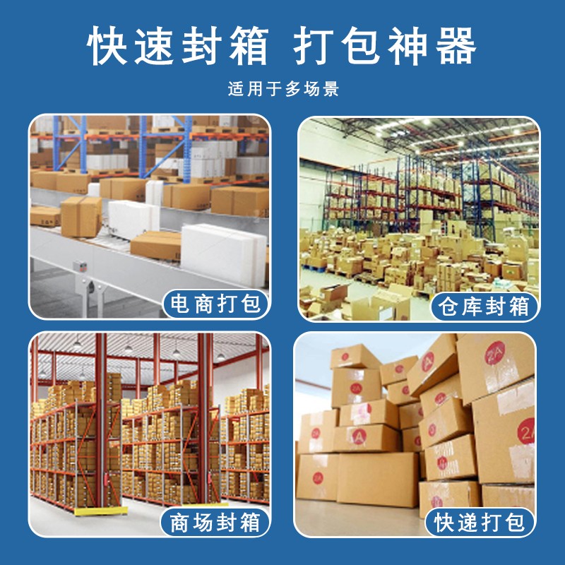 • 包裝效果好:突破傳統(tǒng)貼帶器設(shè)計,封箱密合,膠帶撫平效果好,絕不跳帶,紙箱兩端封箱膠帶折角長度可定制。