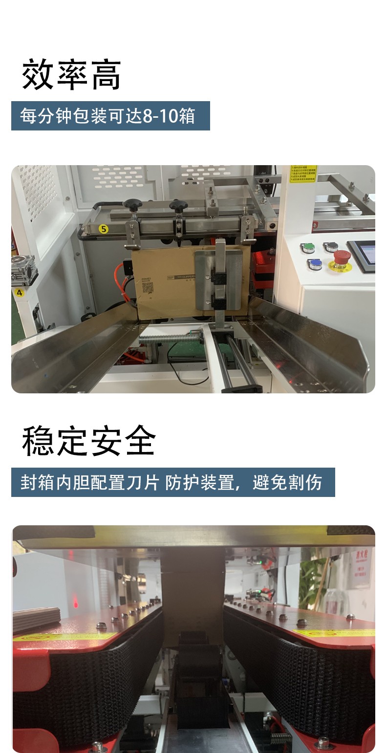 1. 降低人工成本,減少勞動強度人工開箱封底不僅效率低,還需要重復(fù)彎腰、折蓋、封箱等動作,勞動強度大且易引發(fā)疲勞損傷。一臺自動開箱封底機可替代 3-5 名人工,長期使用能顯著降低企業(yè)的人力成本;同時徹底解放人工雙手,將工人從重復(fù)性體力勞動中釋放,轉(zhuǎn)向更具價值的崗位。