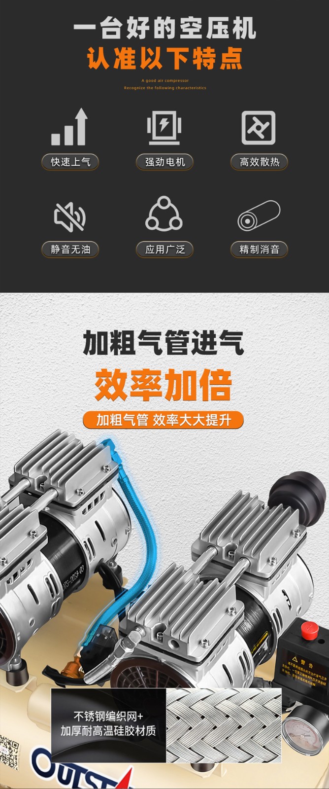 全新充氣泵靜音無(wú)油空氣壓縮機(jī)高壓打氣泵工業(yè)級(jí)空氣大功率充氣