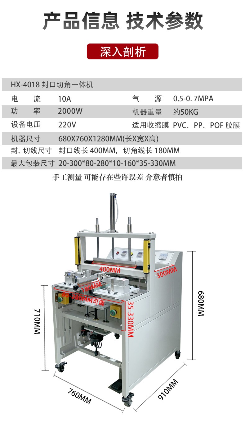 • 高效自動(dòng)化:能自動(dòng)完成封口和切角工序,大大提高生產(chǎn)效率,減少人工成本4
