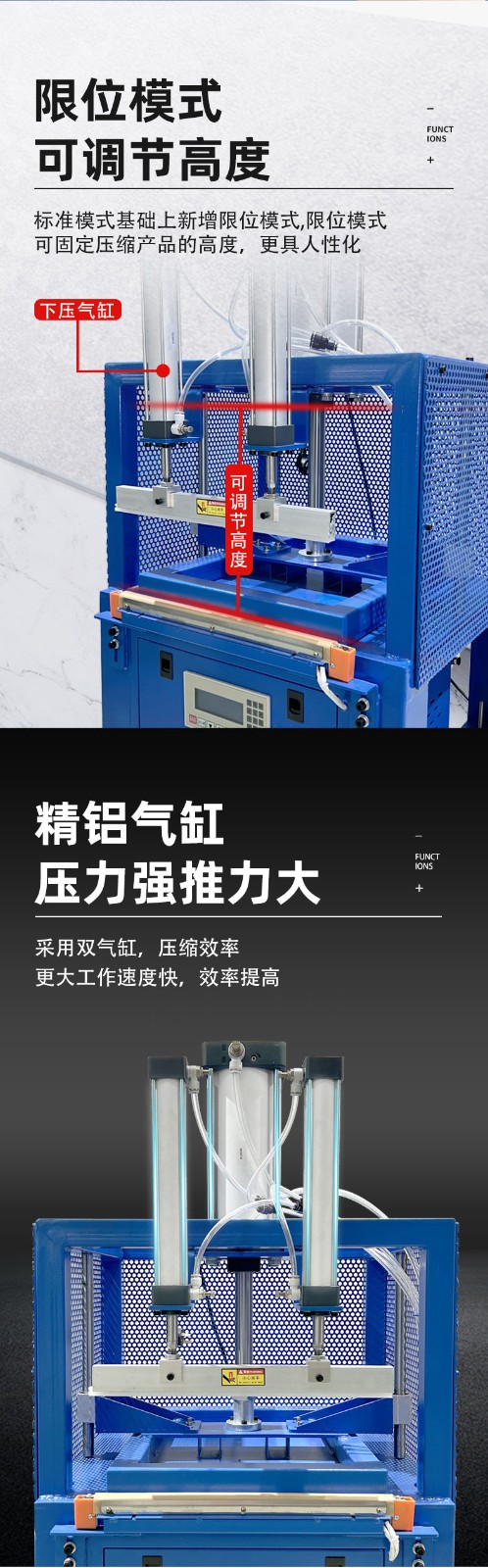 • 壓縮機構:包括壓板、氣缸、絲桿等部件,負責對物品進行壓縮。壓板通常由金屬制成,表面平整,能均勻地施加壓力。氣缸或絲桿則提供動力,使壓板上下移動,實現(xiàn)壓縮動作。