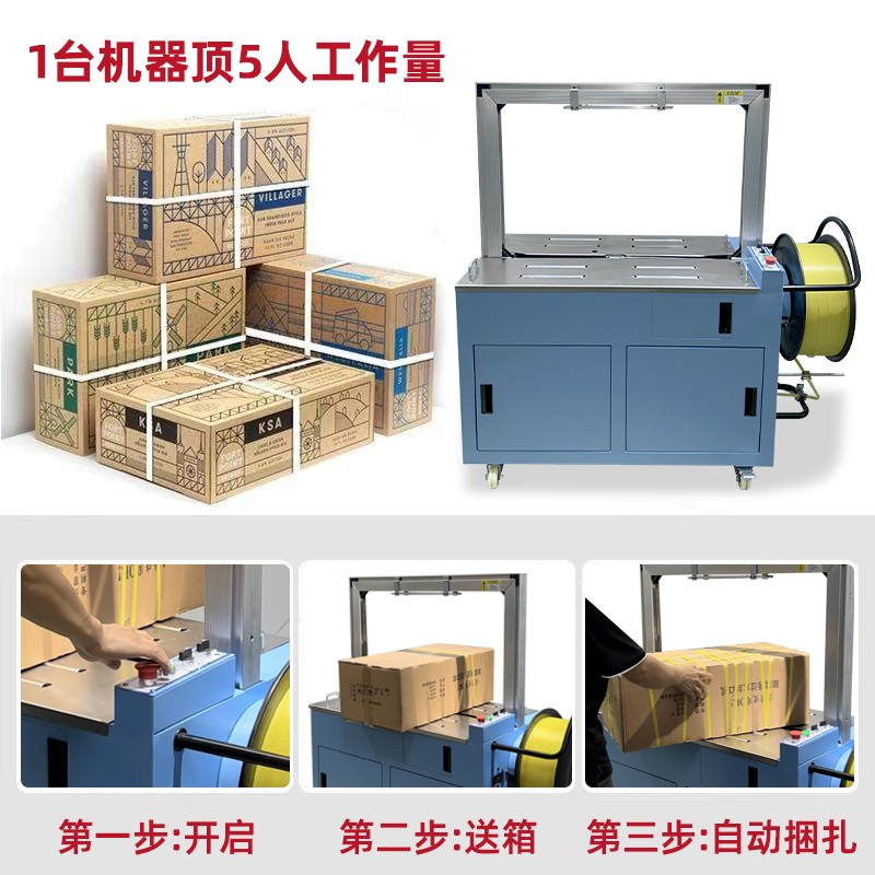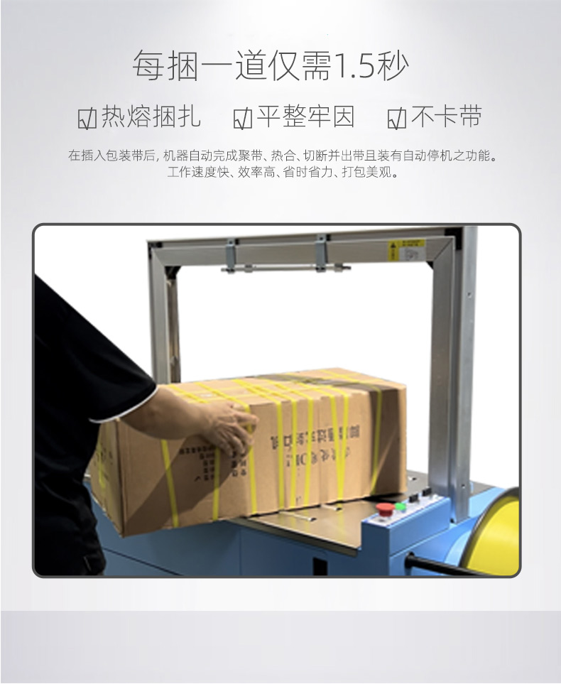 • 自動(dòng)上帶:機(jī)器啟動(dòng)后,會(huì)自動(dòng)從打包帶卷中抽出打包帶,并將其傳送到預(yù)定的位置,準(zhǔn)備進(jìn)行打包。這個(gè)過(guò)程無(wú)需人工干預(yù),大大提高了工作效率。
