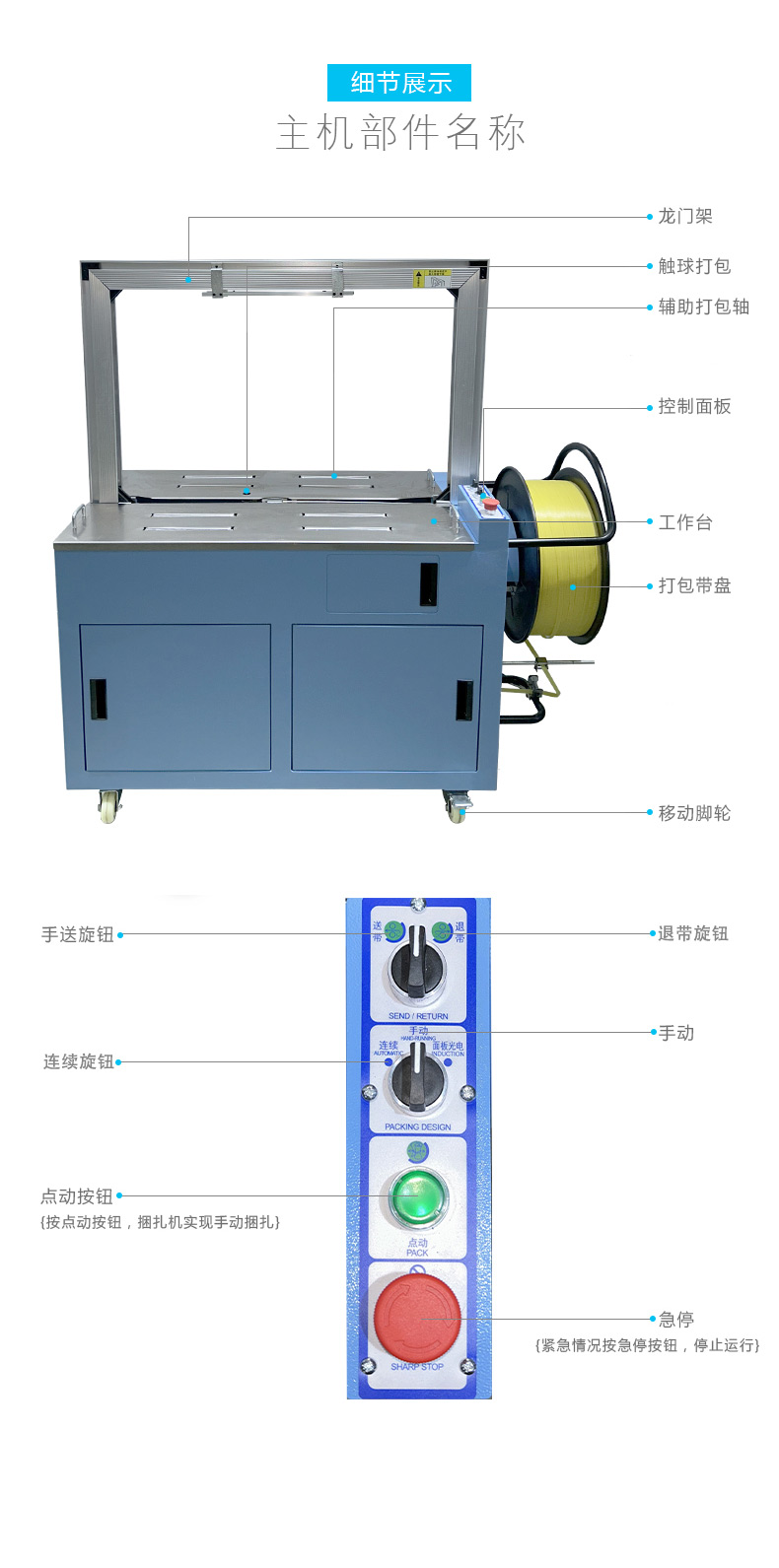 • 全自動(dòng)伺服打包機(jī)通常具有簡(jiǎn)潔、緊湊的外觀設(shè)計(jì),整體結(jié)構(gòu)堅(jiān)固耐用。其機(jī)身主要由框架、工作臺(tái)、輸送帶、控制箱等部分組成。框架一般采用優(yōu)質(zhì)金屬材料制成,經(jīng)過(guò)精細(xì)加工和表面處理,具有良好的穩(wěn)定性和耐腐蝕性。工作臺(tái)位于機(jī)器的中央位置,是放置待打包物品的區(qū)域,表面平整光滑,便于物品的放置和移動(dòng)。輸送帶貫穿整個(gè)機(jī)器,用于輸送物品進(jìn)出打包區(qū)域,其寬度和長(zhǎng)度根據(jù)不同的機(jī)型有所差異,以適應(yīng)各種尺寸的物品打包??刂葡渫ǔ0惭b在機(jī)器的一側(cè),集成了操作面板和控制系統(tǒng),方便操作人員進(jìn)行參數(shù)設(shè)置和對(duì)機(jī)器的運(yùn)行進(jìn)行監(jiān)控。