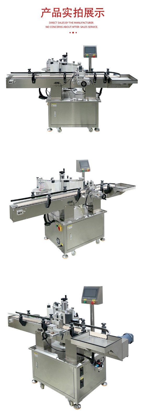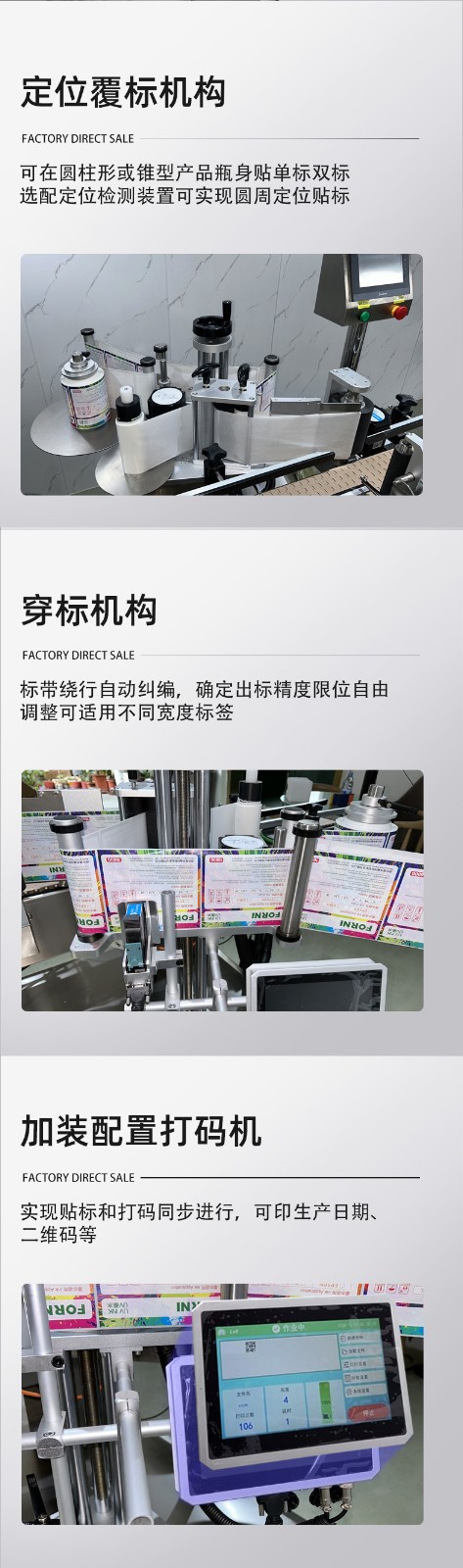 • 貼標(biāo):當(dāng)圓瓶到達(dá)貼標(biāo)位置時,貼標(biāo)機構(gòu)的標(biāo)簽牽引裝置根據(jù)預(yù)設(shè)的標(biāo)簽長度,將標(biāo)簽從標(biāo)簽卷上牽引出來,貼標(biāo)頭在控制系統(tǒng)的指令下,將標(biāo)簽準(zhǔn)確地貼附在圓瓶表面。同時,壓標(biāo)裝置對標(biāo)簽進(jìn)行壓實,使其牢固地粘貼在瓶身上。