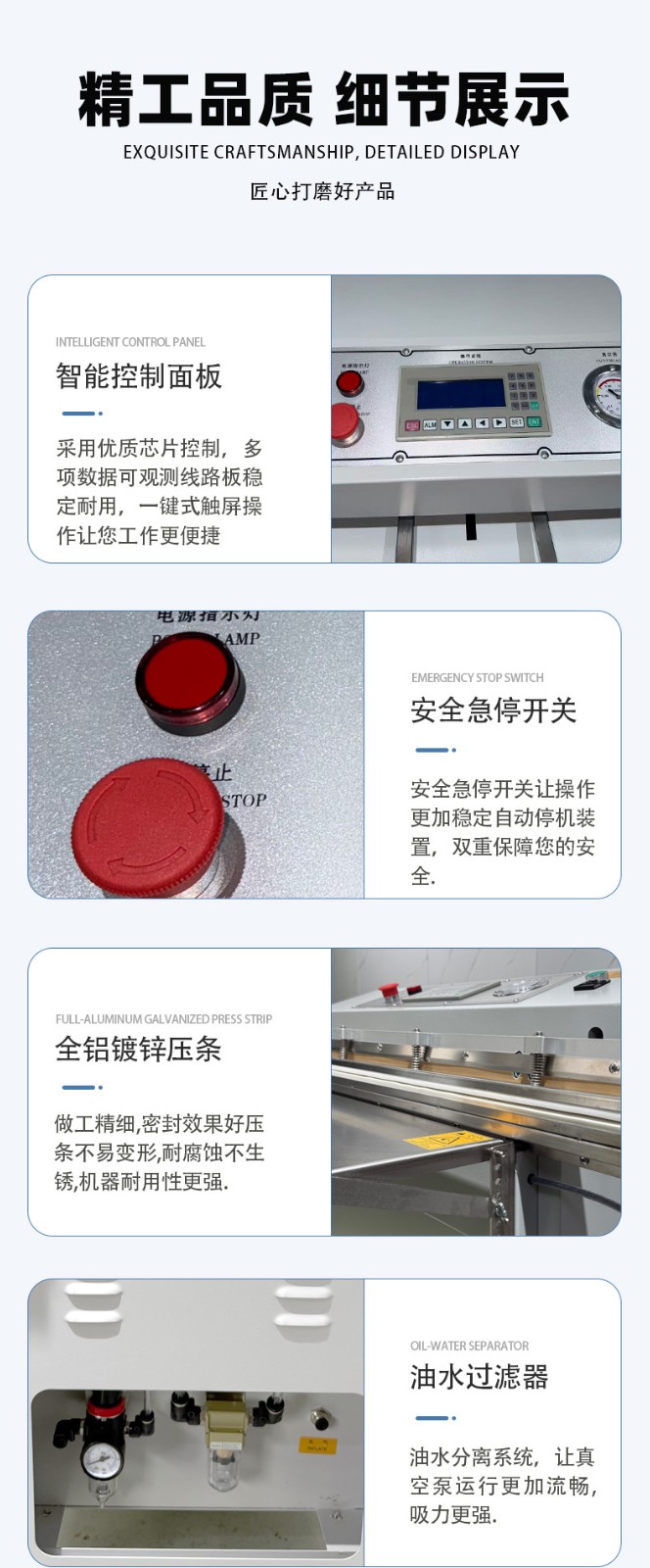 • 操作門檻低:無需頻繁調整腔體大小,只需定位袋口即可啟動,部分機型配備腳踏開關,單人即可高效操作。