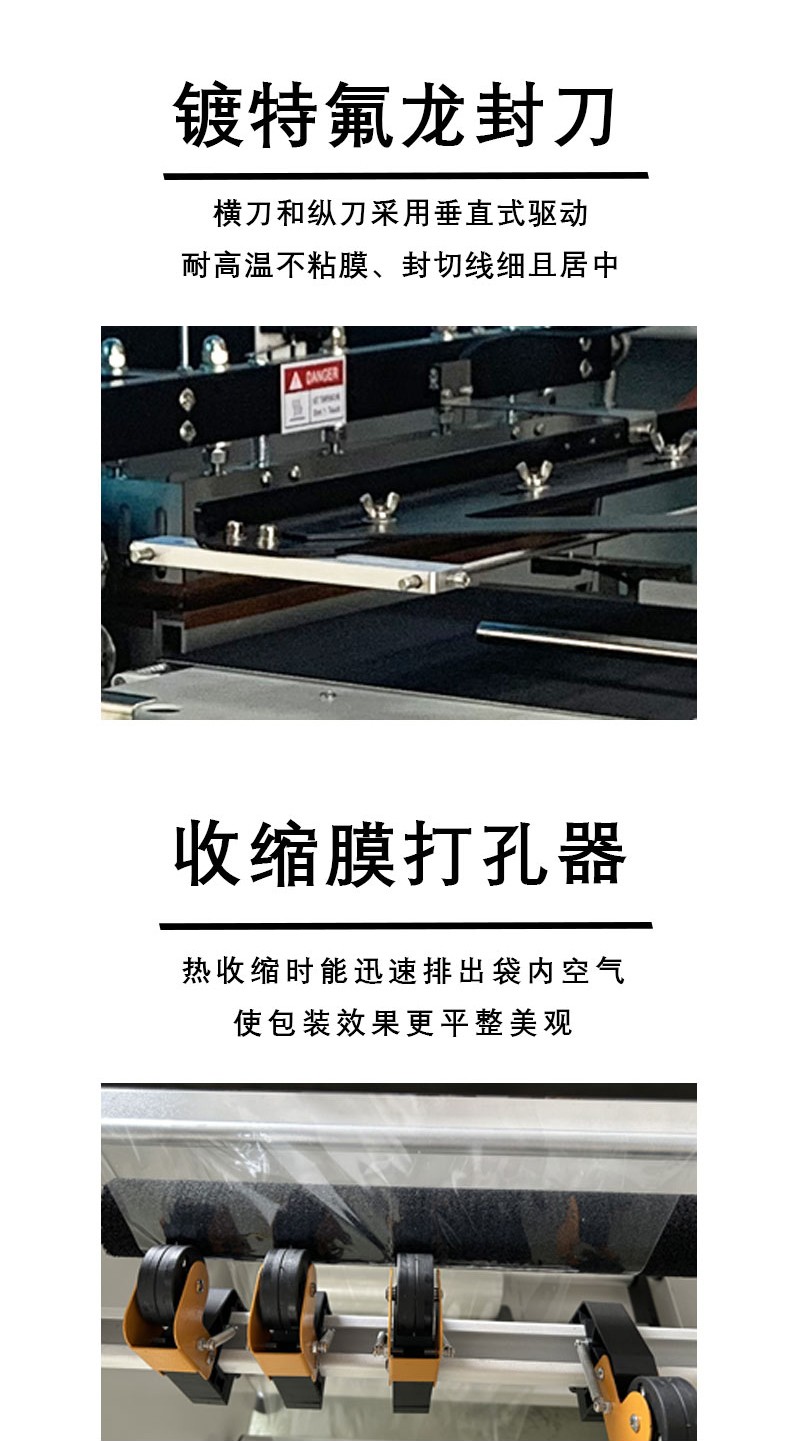 • 傳感器系統(tǒng):包括光電傳感器、溫度傳感器等。光電傳感器用于檢測產(chǎn)品的位置和薄膜的輸送狀態(tài),例如,檢測產(chǎn)品是否到達封切位置、薄膜是否有足夠的長度用于包裝等。溫度傳感器則分別安裝在封切裝置和收縮通道內(nèi),用于實時監(jiān)測溫度,并將信號反饋給控制系統(tǒng),以便及時調(diào)整加熱功率。